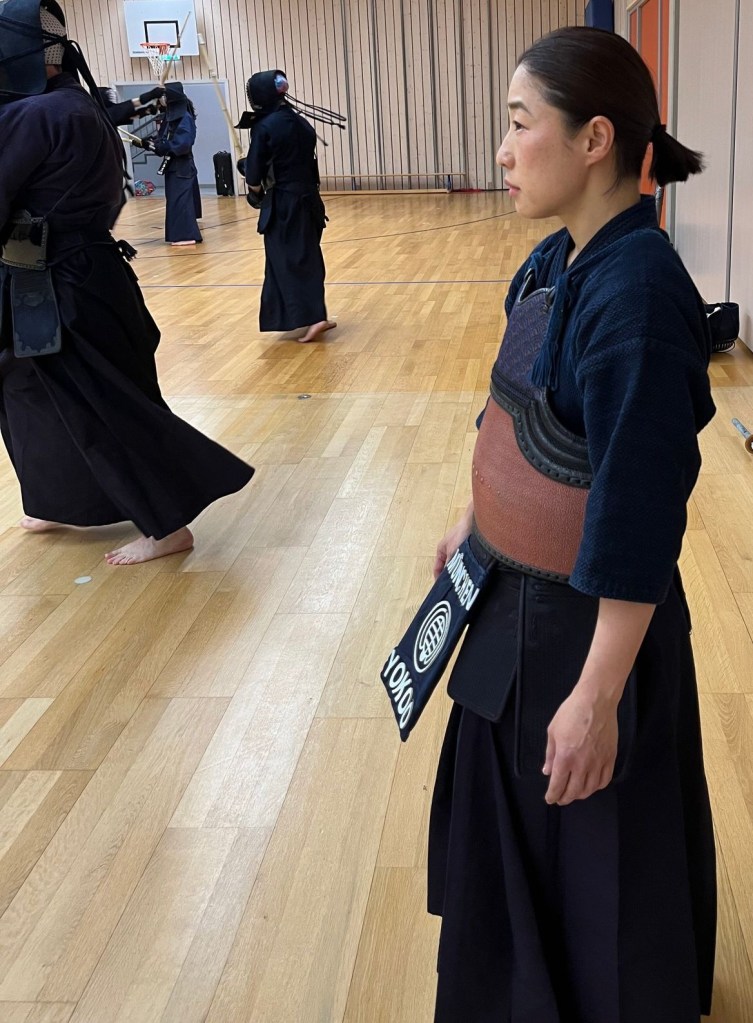 The first time I spoke to and trained with Yokoo was in Hungary in 2022 before the National Gathering Shiai. Although Australia fought Germany in the team competition at the 2003 WKC, and we had attended other WKC together, I had never spoken to Yokoo. I had followed Yokoo on social media and was in awe of how serious and committed to kendo she was. Her posts were motivational, and nagged my consciousness that I need to be training more and working harder to improve. Last year, when I first met Yokoo I recall feeling an instant nervous excitement and respect. I was quietened by her powerful and calm aura/ki (presence). It was a little intimidating but positive in a way that incites focus and growth. All this mental assessing was occurring even before our keiko.